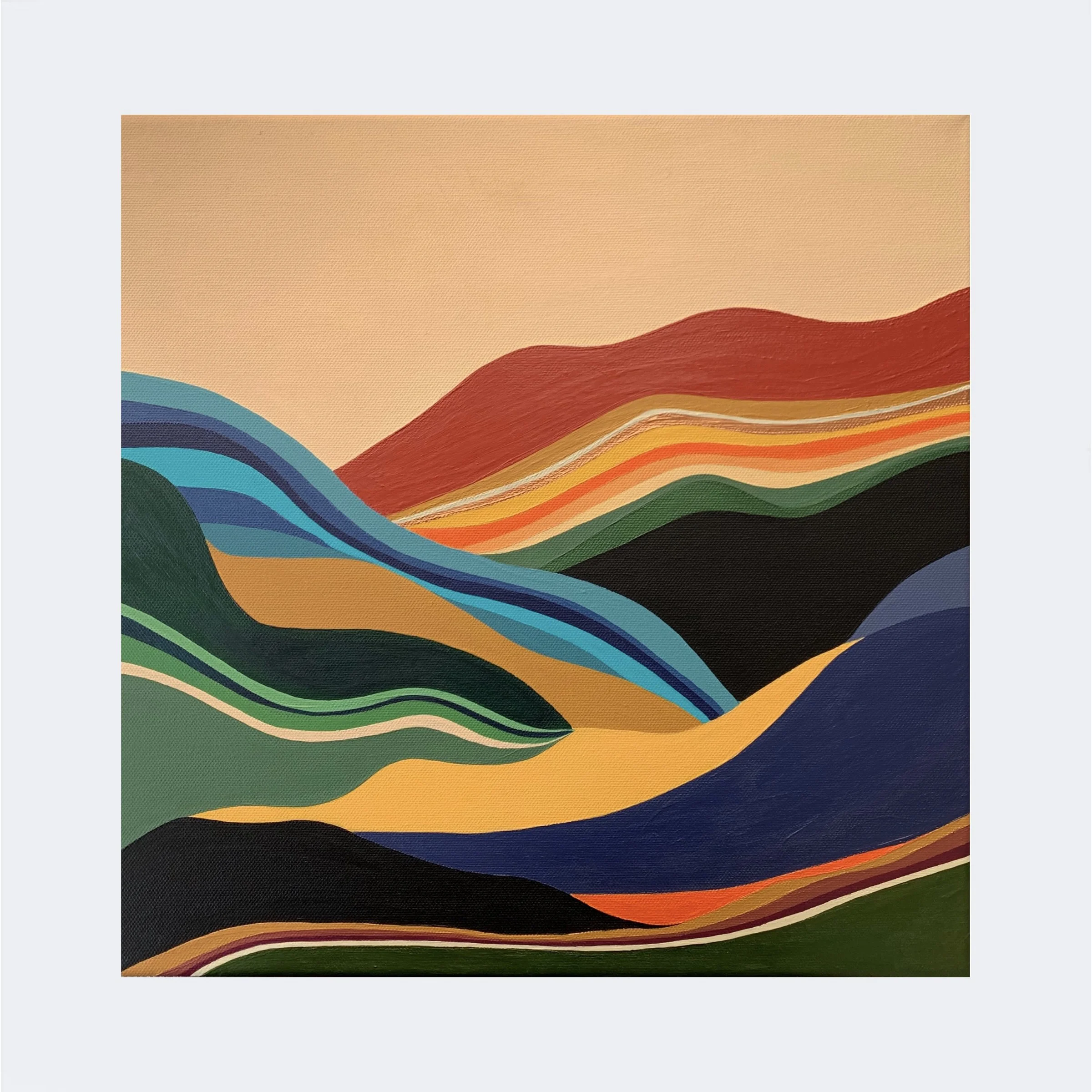 Timewaves (sold) Acrylic paint on100% cotton canvas.40x40 cm / 1,5 cm edges380 g/mยฒ Signed on the back.